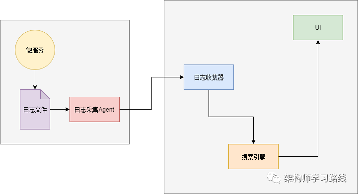 因此,在应用规模变大时,我们需要一个日志的“搜索引擎”。以便于能准确的找到想要的日志。另外,数据源一侧还需要收集日志的组件和展示结果的UI组件: