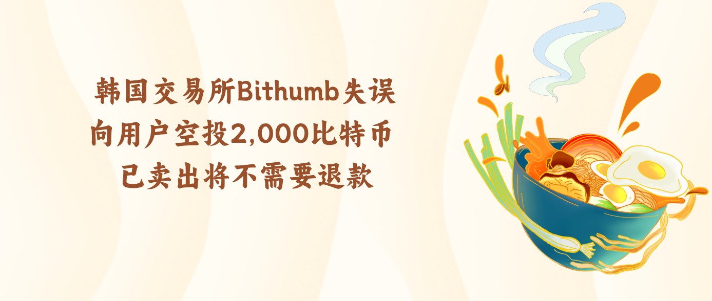 韩国交易所Bithumb失误向用户空投2,000比特币 已卖出将不需要退款