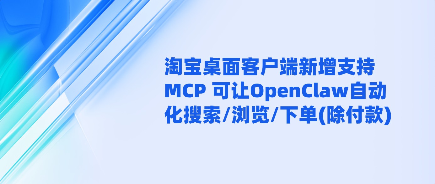 淘宝桌面客户端新增支持MCP 可让OpenClaw自动化搜索/浏览/下单(除付款)
