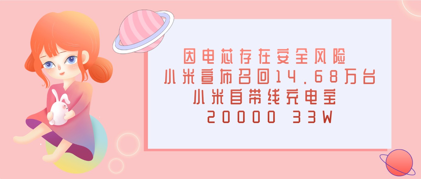 因电芯存在安全风险 小米宣布召回14.68万台小米自带线充电宝 20000 33W